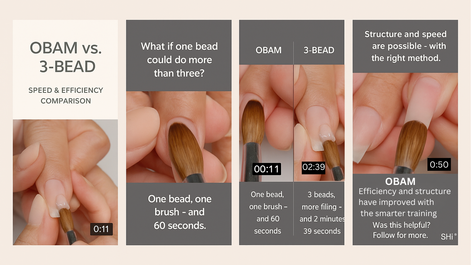 - OBAM Acrylic Application: Nail the foundational techniques of one-bead and two-bead acrylic applications, giving you precision and efficiency.